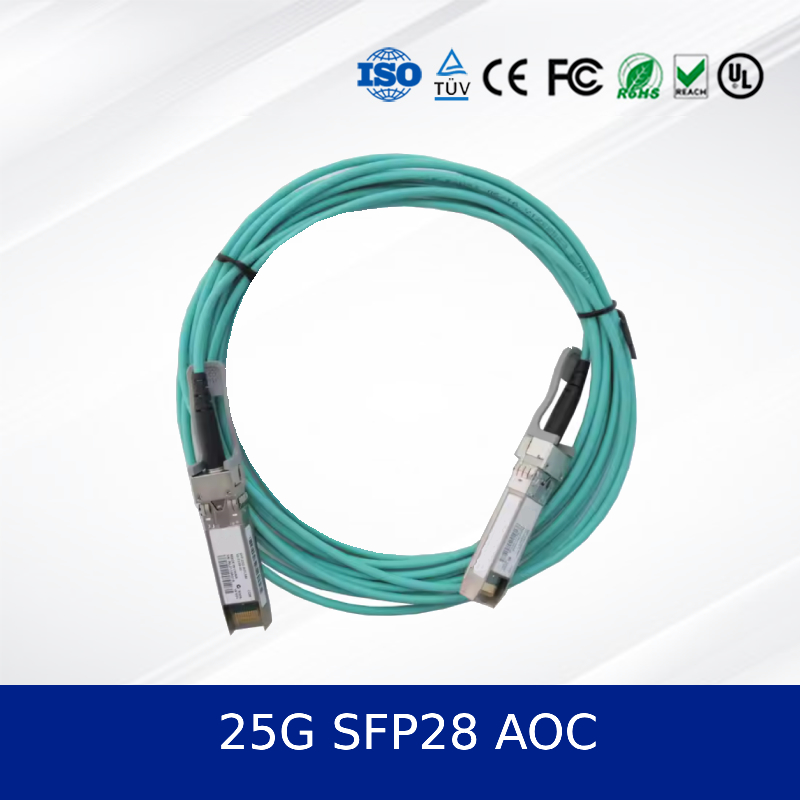 25G SFP28 AOC 3m অ্যাক্টিভ অপটিক্যাল কেবল 100m পৌঁছায়, কম শক্তি, ডিজিটাল ডায়াগনস্টিক্স